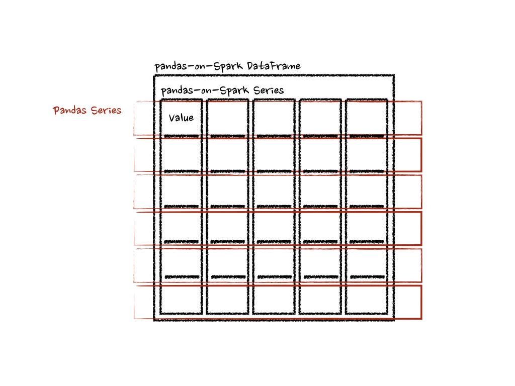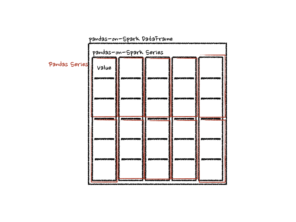 In DataFrame.pandas_on_spark.transform_batch(), DataFrame.pandas_on_spark.apply_batch(), Series.pandas_on_spark.transform_batch(), etc., the batch postfix means each chunk in pandas-on-Spark DataFrame or Series. The APIs slice the pandas-on-Spark DataFrame or Series, and then apply the given function with pandas DataFrame or Series as input and output. See the examples below: